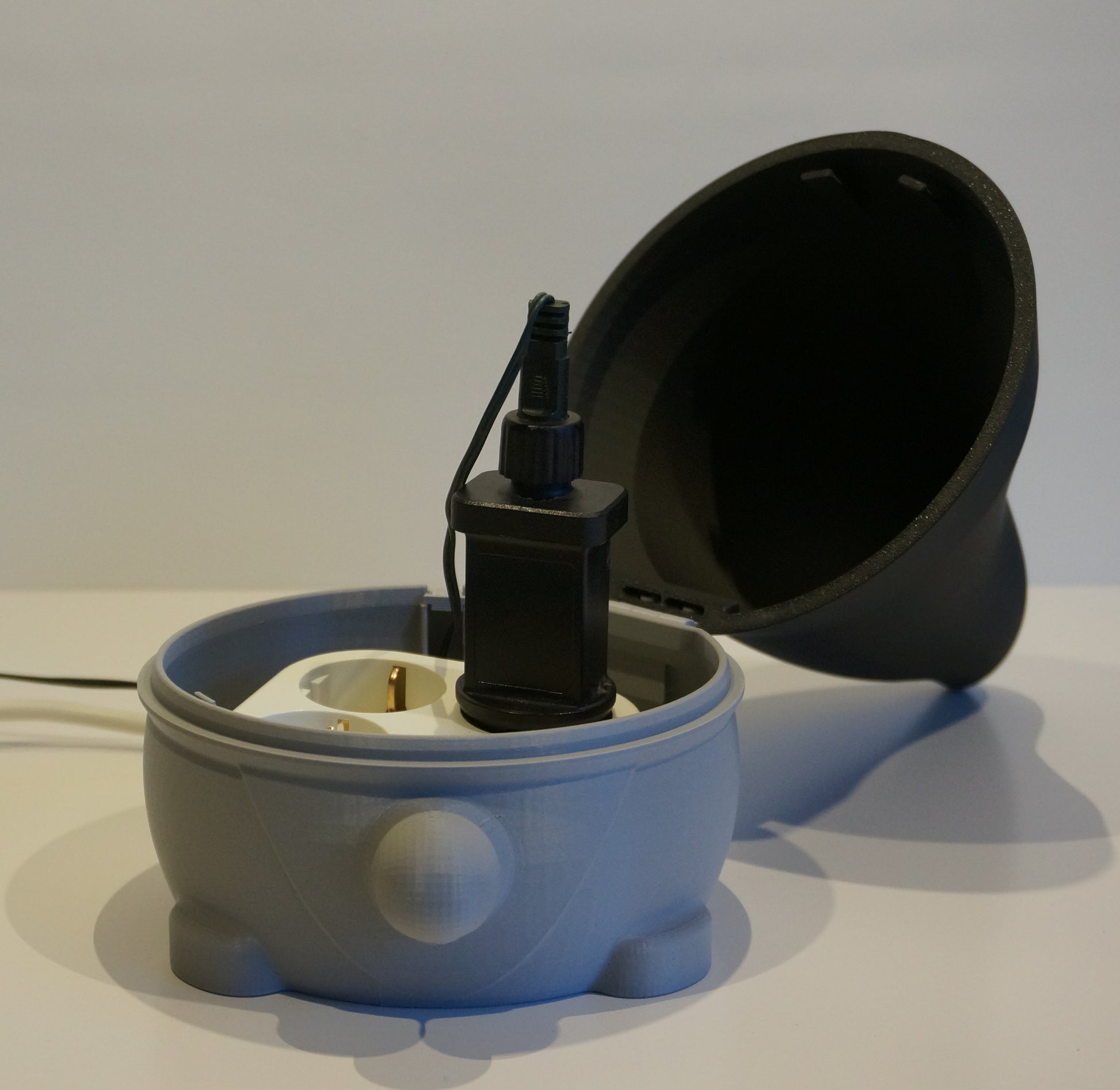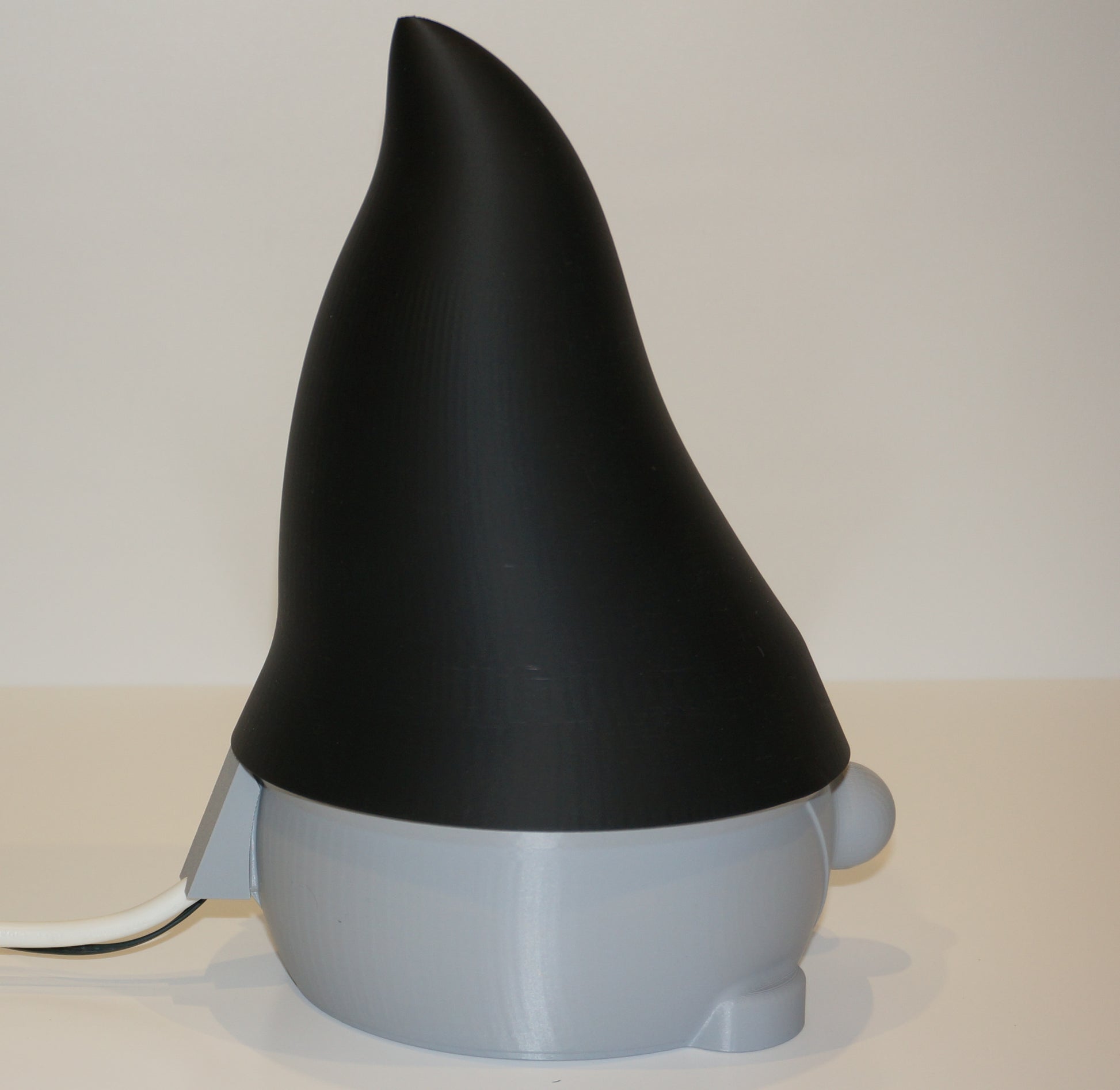 - Place the plug connection inside the Stroom Gnoom’s open, gnome-shaped cover.